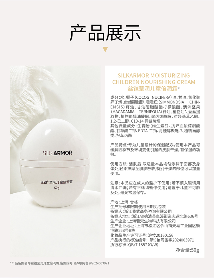 【產(chǎn)品功效】:專為兒童設計的保濕配方。使用本產(chǎn)品可緩解因季節(jié)及環(huán)境變化引起的皮膚干燥,有保濕的功效。